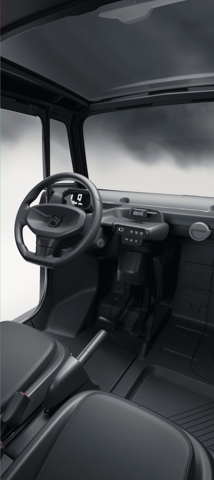 - Automatikgetriebe (i) Für ein sanftes und müheloses Fahrerlebnis. Der ami verfügt über drei intuitive Tasten (Rückwärts/Neutral/Vorwärts) für einfaches, stressfreies Fahren, ideal im Stadtverkehr